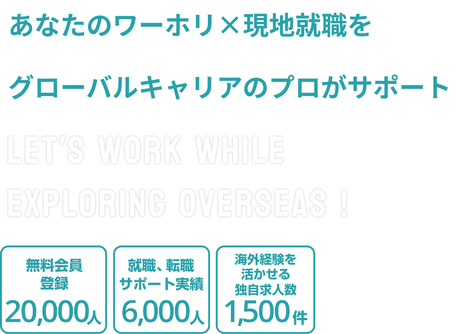 海外での就職経験や専門留学の経験は、帰国後のキャリア形成に有利になることがあります。しかし、ワーキングホリデーや留学で海外に行っても企業にアピールできる仕事の経験や専門資格が身につかずに帰国し、就職に繋げられない方も多くいらっしゃいます。 より良い条件の企業を紹介させていただくために、当サービスでは渡航前の段階で帰国後を見据え、 就活に有利な経験を積めるプランのご紹介をしております。 まずは、海外就職のプロに一度ご相談してみてください。